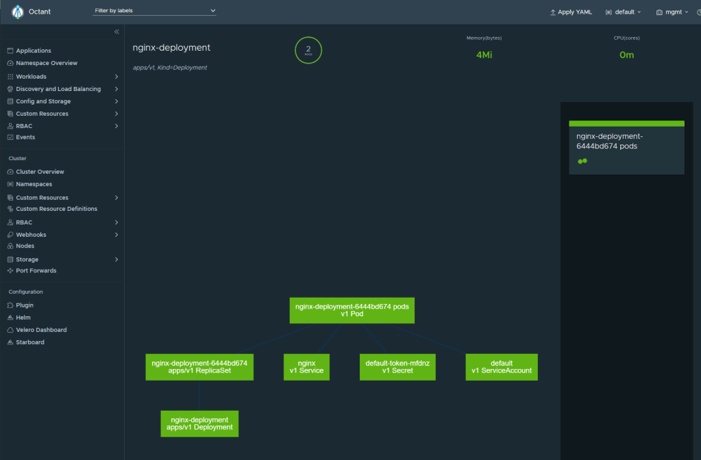 From the project’s Github page: “Octant is a tool for developers to understand how applications run on a Kubernetes cluster. It aims to be part of the developer’s toolkit for gaining insight and approaching complexity found in Kubernetes. Octant offers a combination of introspective tooling, cluster navigation, and object management along with a plugin system to further extend its capabilities”