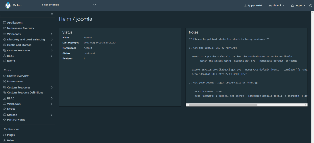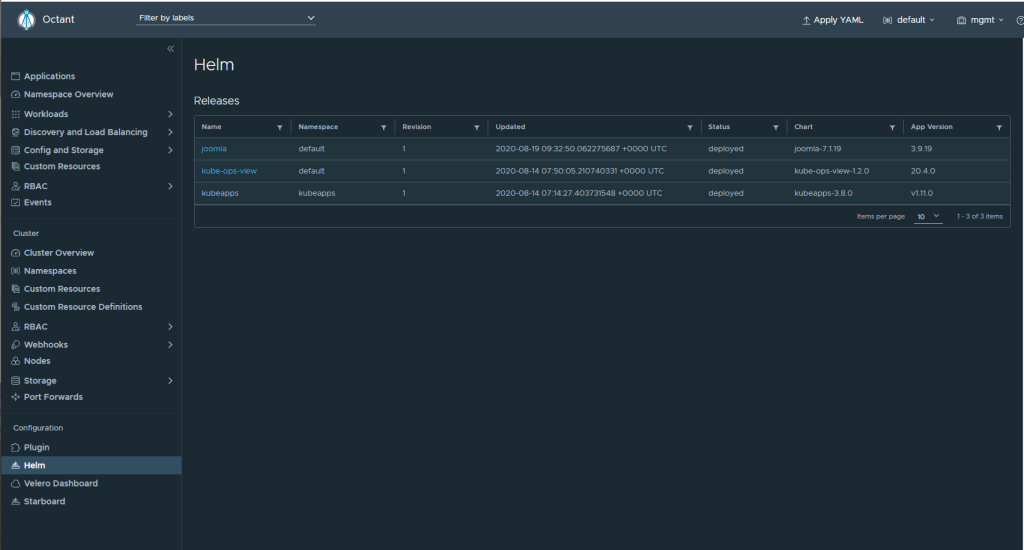 2. Octant-Helm plugin – view all the Helm packages that are installed in the cluster you manage