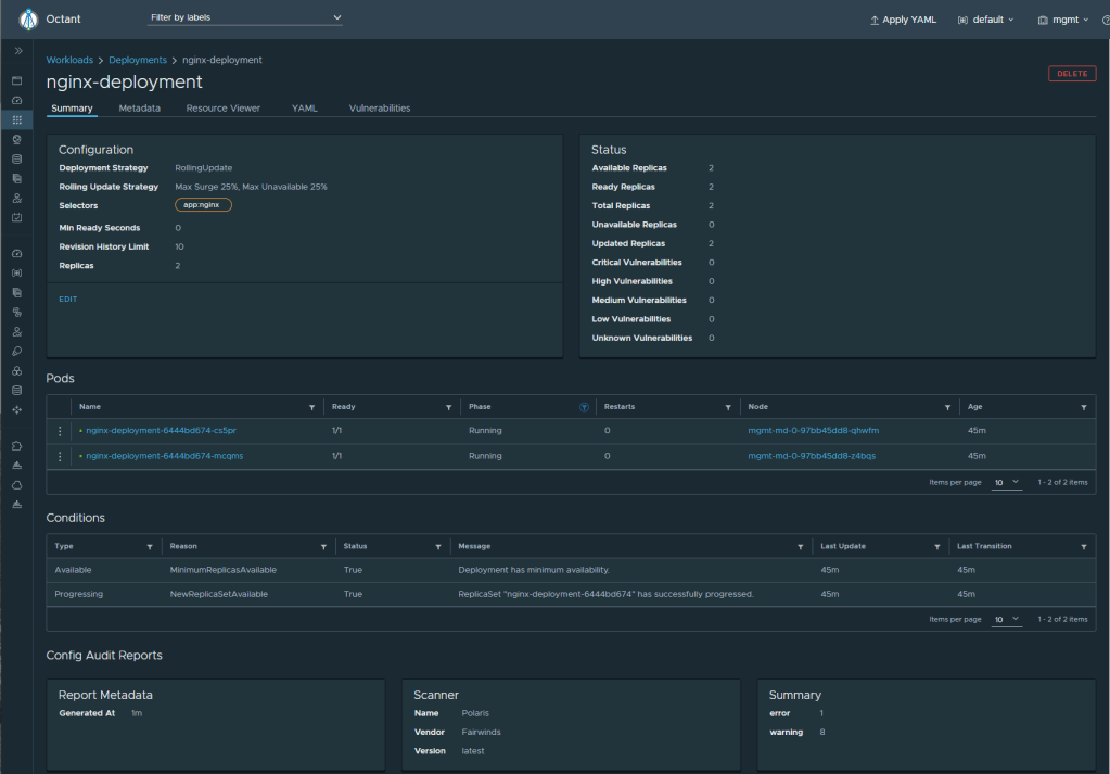 Octant has highly extensible plugin system for users to provide additional functionality through gRPC. Plugin authors can add components on top of existing views.