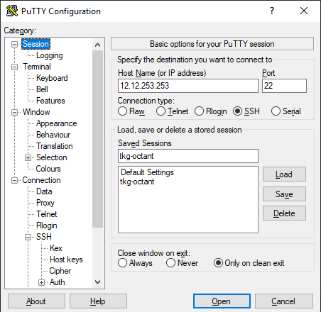if you are running this on a MAC or Windows WSl which have a local browser, skip the next step and open the browser locally pointing to the local web service Octant created. If Octant is running a machine that doesn’t have a web browser you will need to open a tunnel to it. In this example I am using Putty which allows you to create such SSH tunnel which will allow you to open your browser with the Octant dashboard.