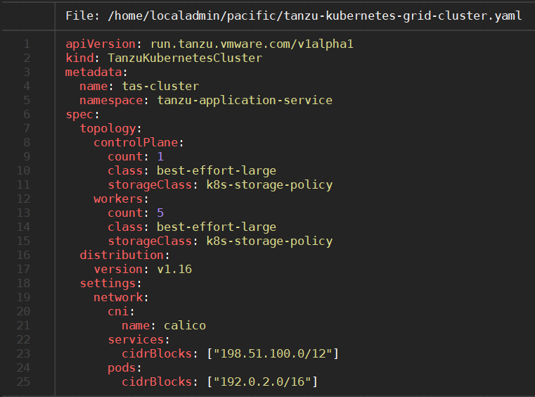 The creation of the TKG’s is being done with a simple YAML file, for example: