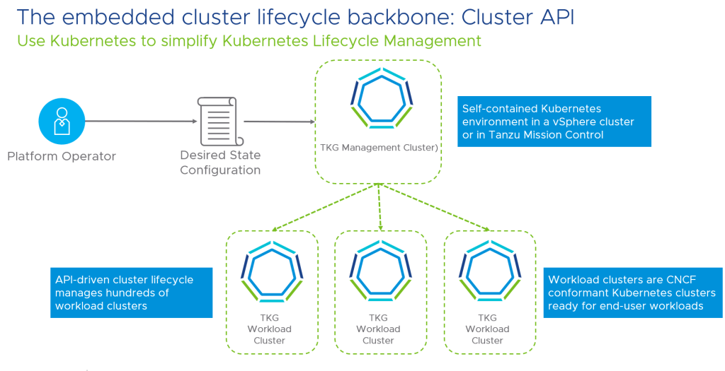 Now that you have a fleet of kubernetes cluster running and being managed by kubernetes itself how do you achieve that operational consistency? that’s where Tanzu Mission Control is getting in. Tanzu mission control is a management control plane that can provision clusters with ClusterAPI on vSphere, AWS and AZURE (roadmap) as IaaS and manage the day 0 and day 2 of those clusters. but we know customers will leverage unique capabilities from different public clouds so Tanzu mission control can also attach any conformant kubernetes cluster and allow you to manage them just like those you provisioned except of the life cycle part.