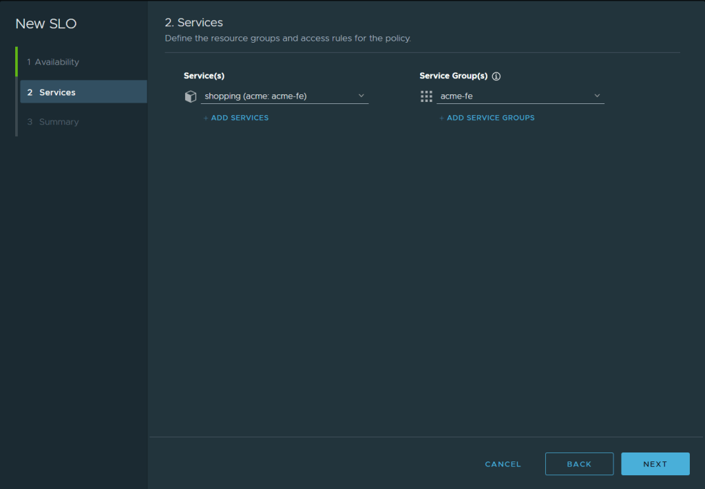 The services I am applying the SLO policy to is just the frontend one called “shopping”