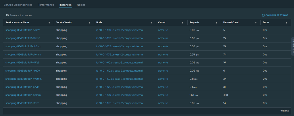 once the auto-scaler kicked in the pods were created in the FE cluster. you can also see that on the Tanzu Service Mesh console in the Instances pane
